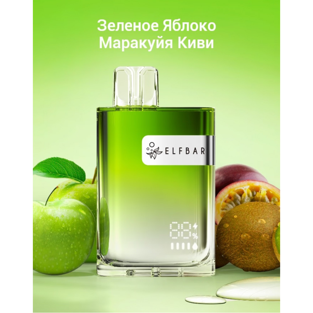 • Elf Bar CR8000 - Зеленое Яблоко Маракуйя Киви