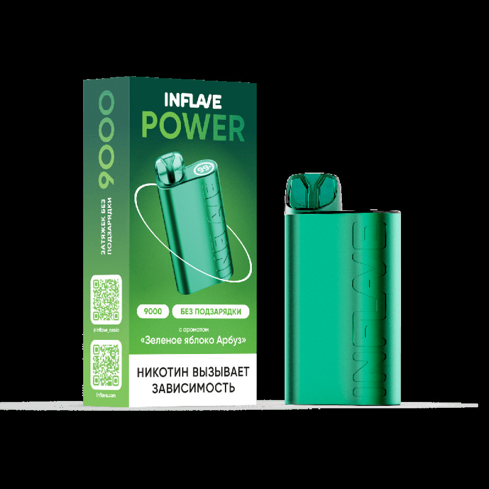 Электронная сигарета INFLAVE POWER 9000 затяжек Зеленое Яблоко Арбуз - купить в Тамбове
